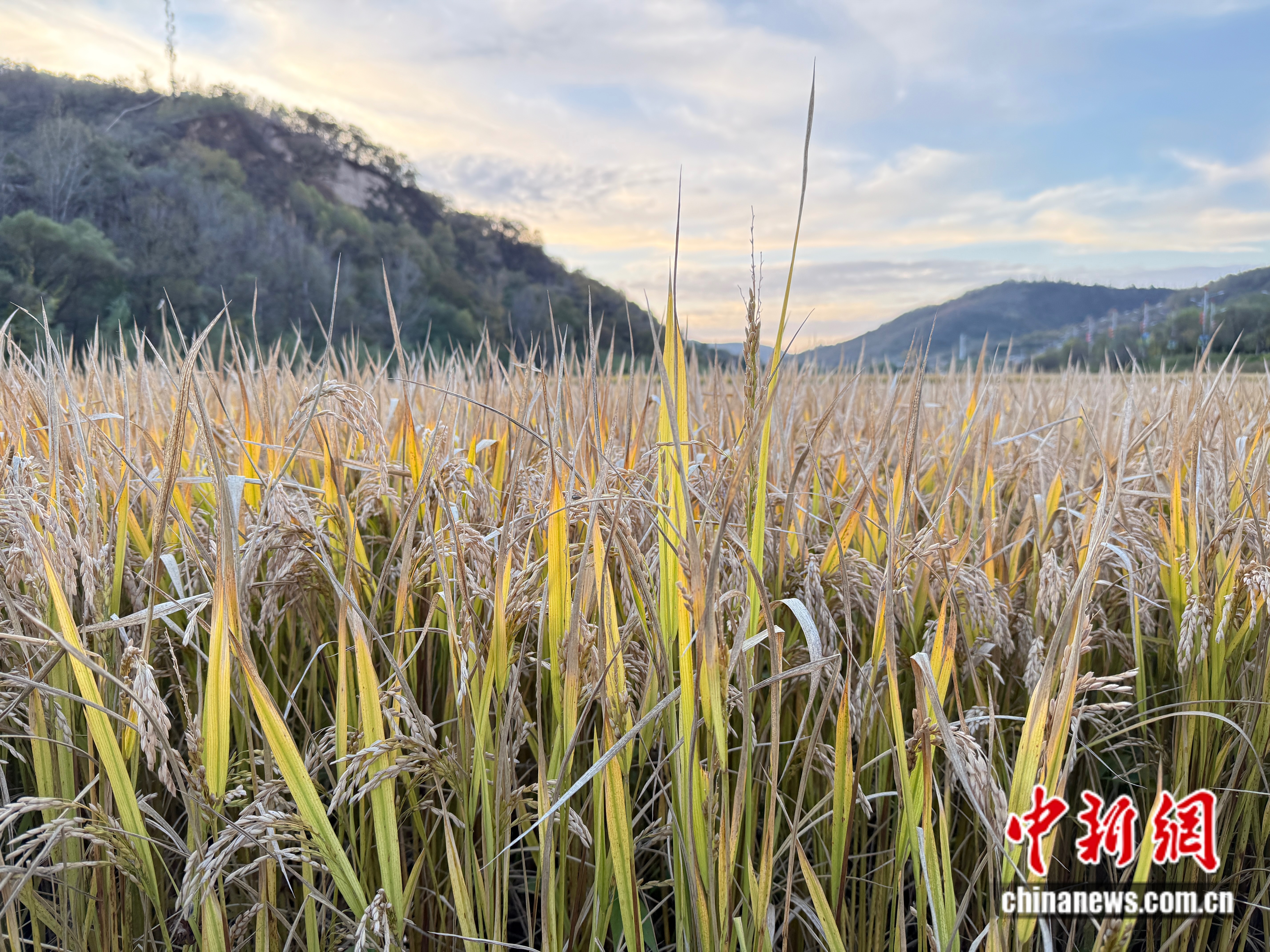 中新网延安10月18日电(记者 邵萌)深秋时节的陕西延安南泥湾,风光旖旎。晴空之下,金色稻田随风摇曳,显出勃勃生机。