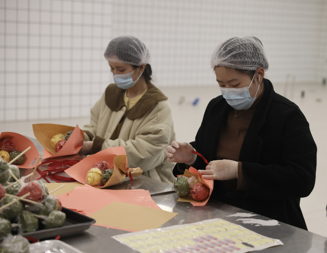宁波大学餐饮服务中心副主任王刚介绍,“三八”国际妇女节将至,餐饮服务中心以“家文化”为核心,融合环保健康理念,用纯天然材料打造这份节日惊喜。“我们以‘健康+创意’为思路,一共制作了2000余枚馒头花,三朵扎成一束,共准备700余份,将悉数赠予全校女教师。”