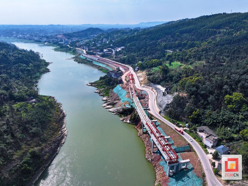 今年以来,二期项目加速推进,施工线路自西北向东南延伸,贯穿自流井区(高新区)、沿滩区、富顺县。安溪沿江桥群、镇溪河大桥、银蛇溪大桥等控制性节点工程建设势如破竹,呈现出你追我赶、只争朝夕的态势。二期累计完成路基工程75%、桥梁工程55%。项目三期已启动建设,正集中攻坚房屋拆除和杆管线迁改。