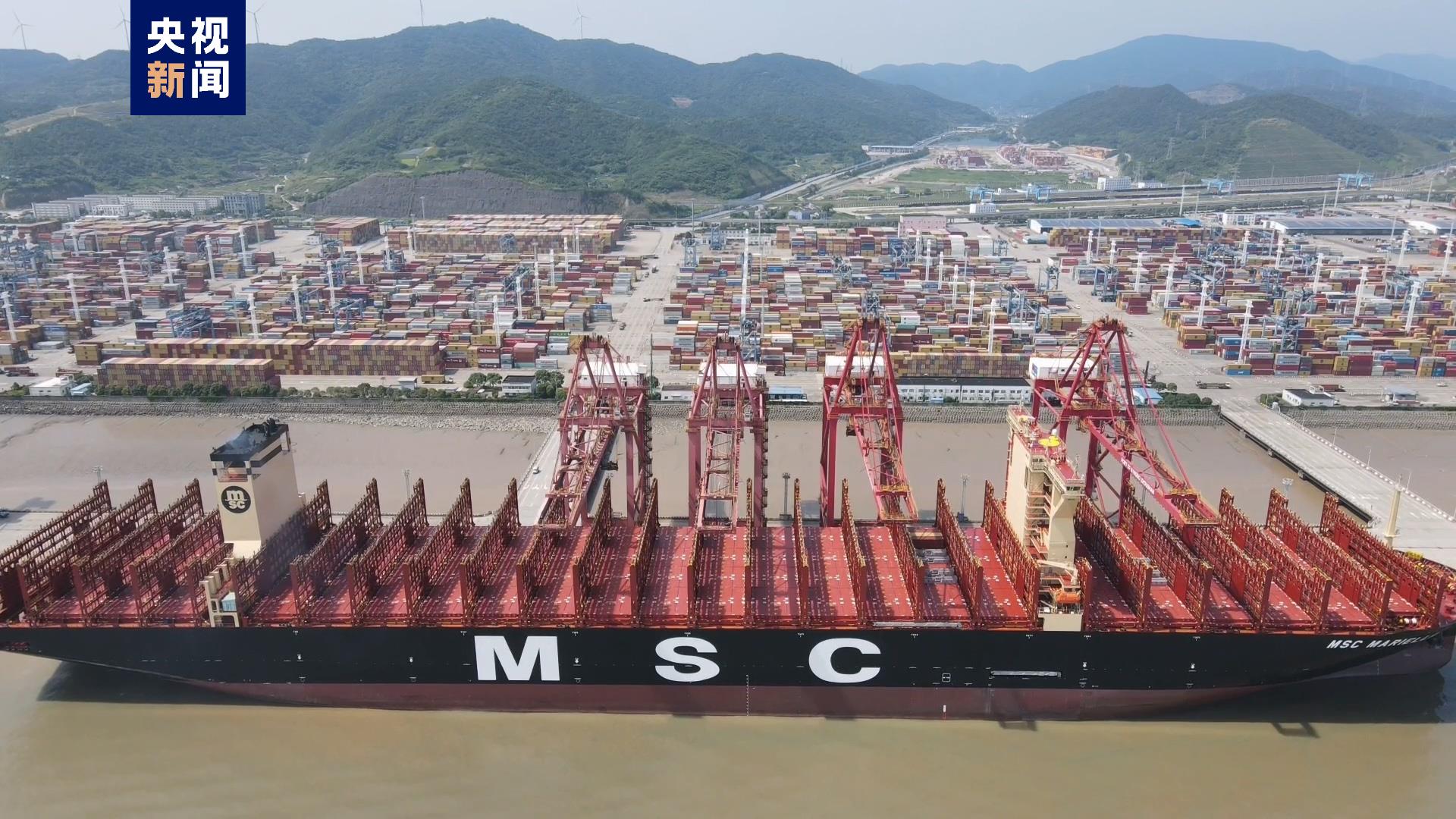 据了解,仅今年上半年,就有182艘超大型集装箱船停靠宁波舟山港,同比增长22.15%。