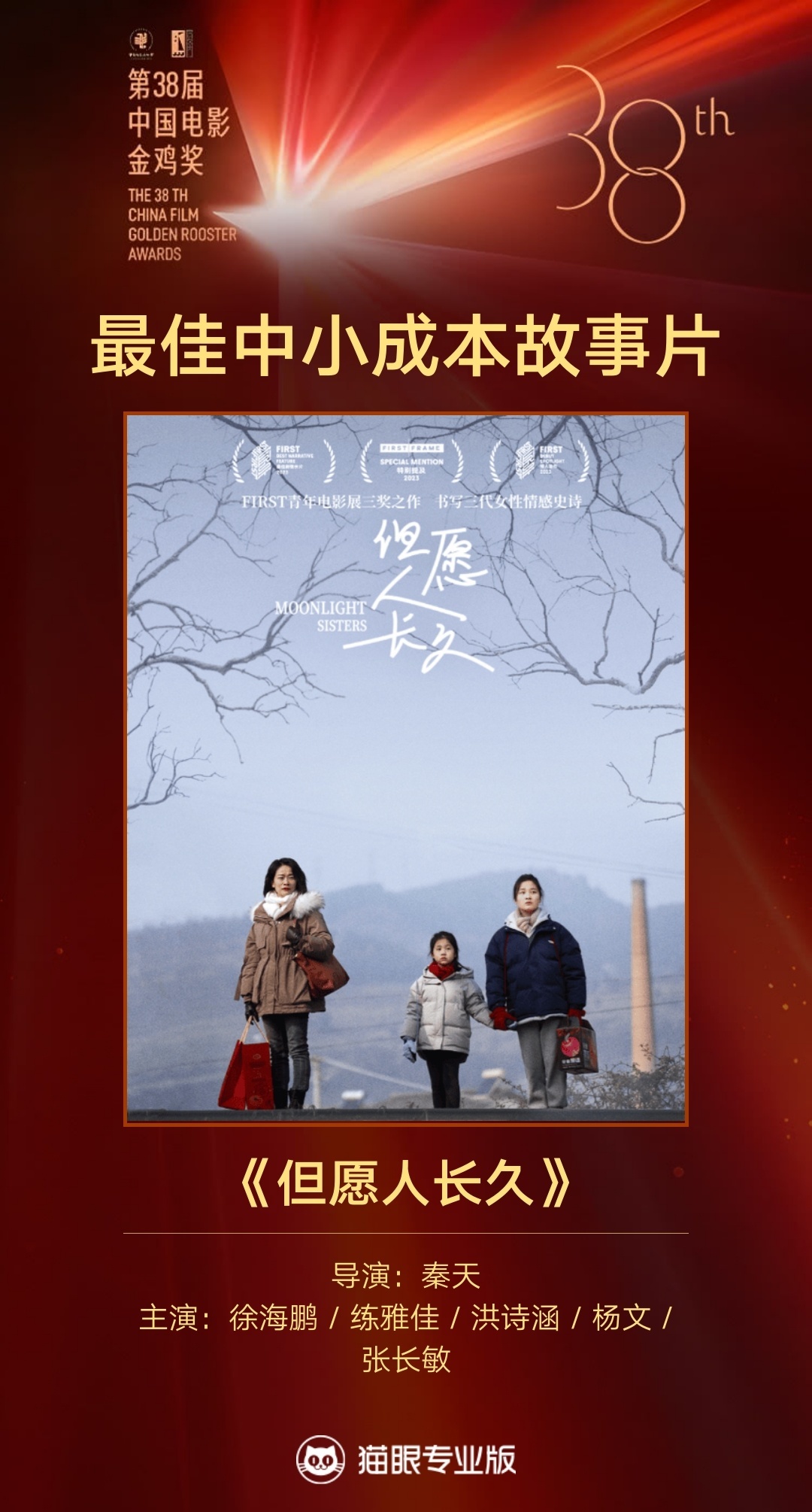 11月15日晚,第38届中国电影金鸡奖颁奖典礼在厦门举行,由川籍导演秦天执导、成都山野沐潼文化传播有限公司出品的《但愿人长久》荣获“最佳中小成本故事片”奖。与此同时,由川籍导演饺子执导、成都可可豆动画影视有限公司制作出品的《哪吒之魔童闹海》也成功摘得“最佳美术片”桂冠。此外,第二届金熊猫奖最佳影片奖《还有明天》(意大利)获得了第38届中国电影金鸡奖最佳外语片奖。