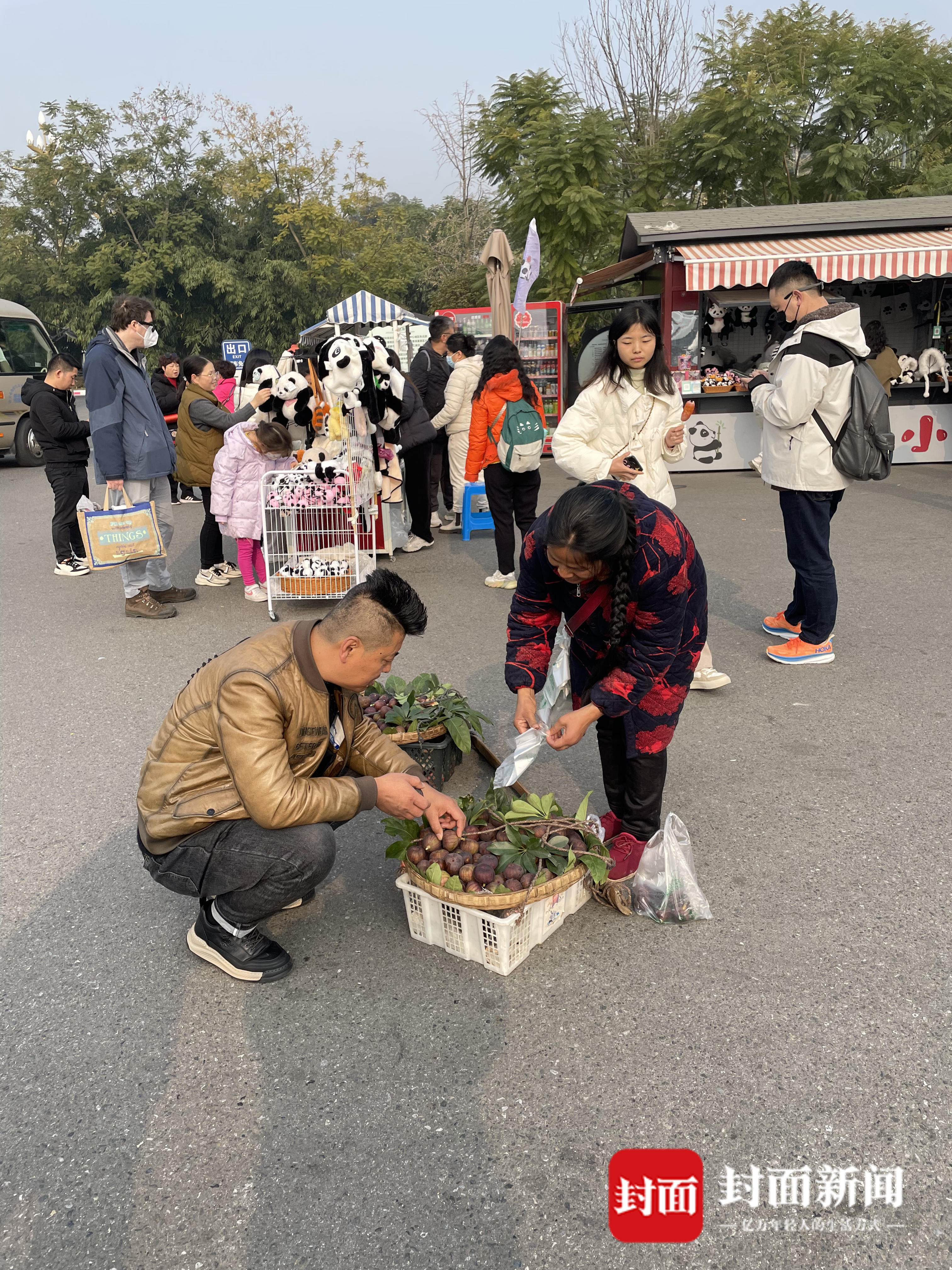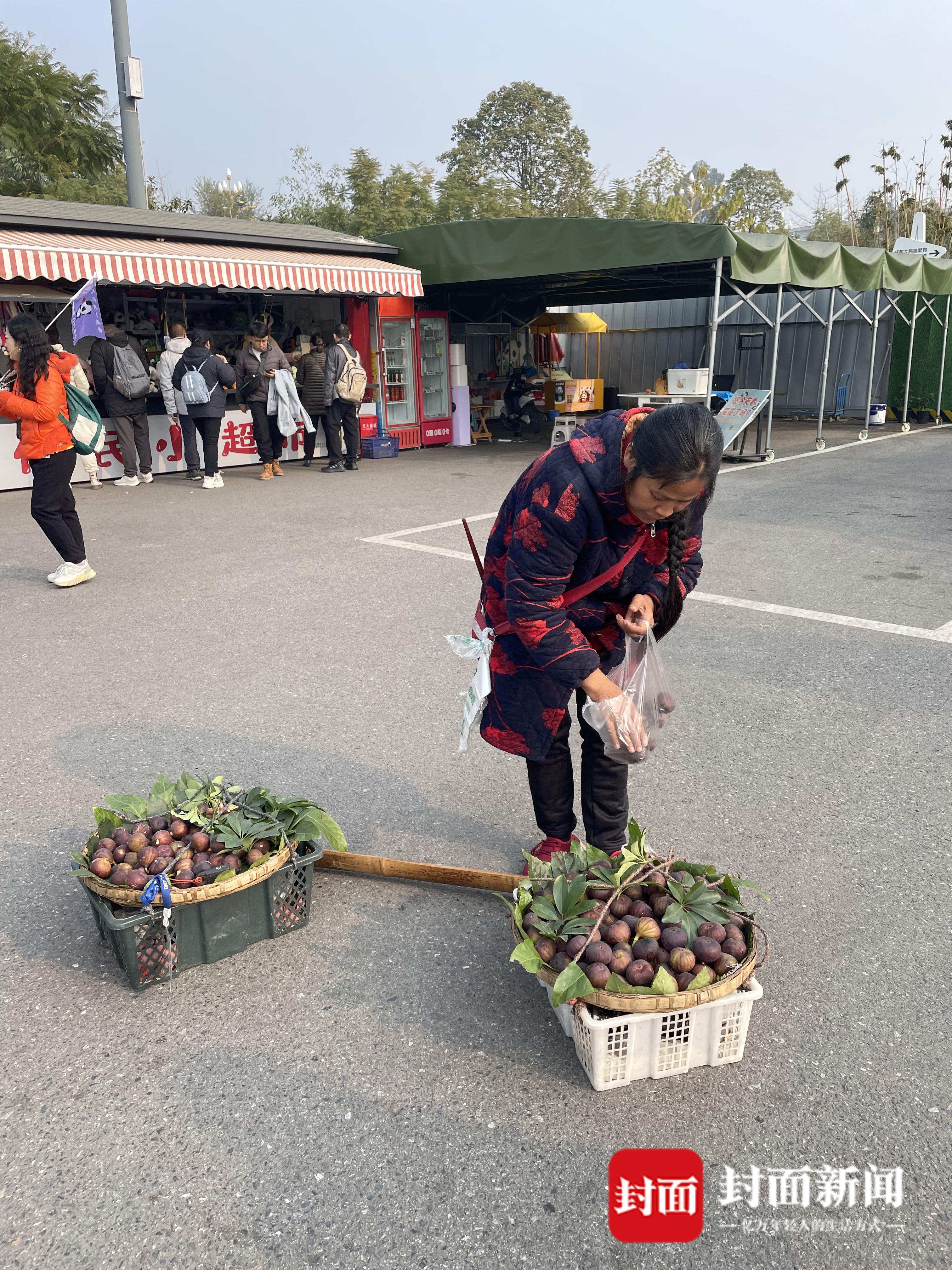 “无花果很甜的,very delicious(十分美味)。”当天上午11点,在成都熊猫基地外,谢洪英编着麻花辫、穿着大花袄,一边向过往路人吆喝叫卖,一边从筐里给客人挑拣无花果。