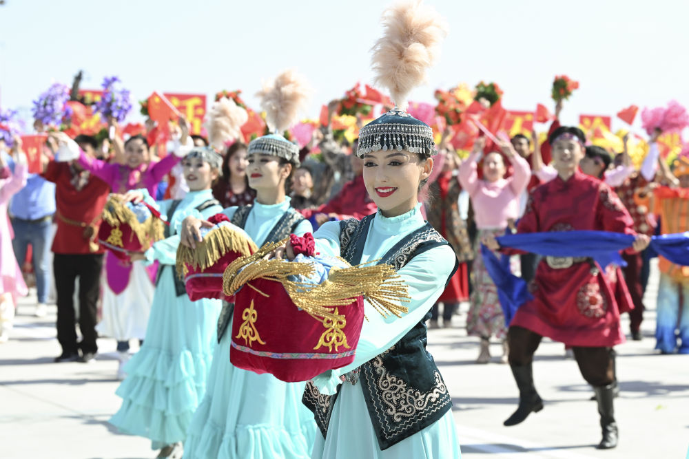 新华社记者的镜头里,各族儿女簇拥在一起,欢笑在一起;明艳的服饰、热烈的歌舞,无不展现出团结与奋进的力量。