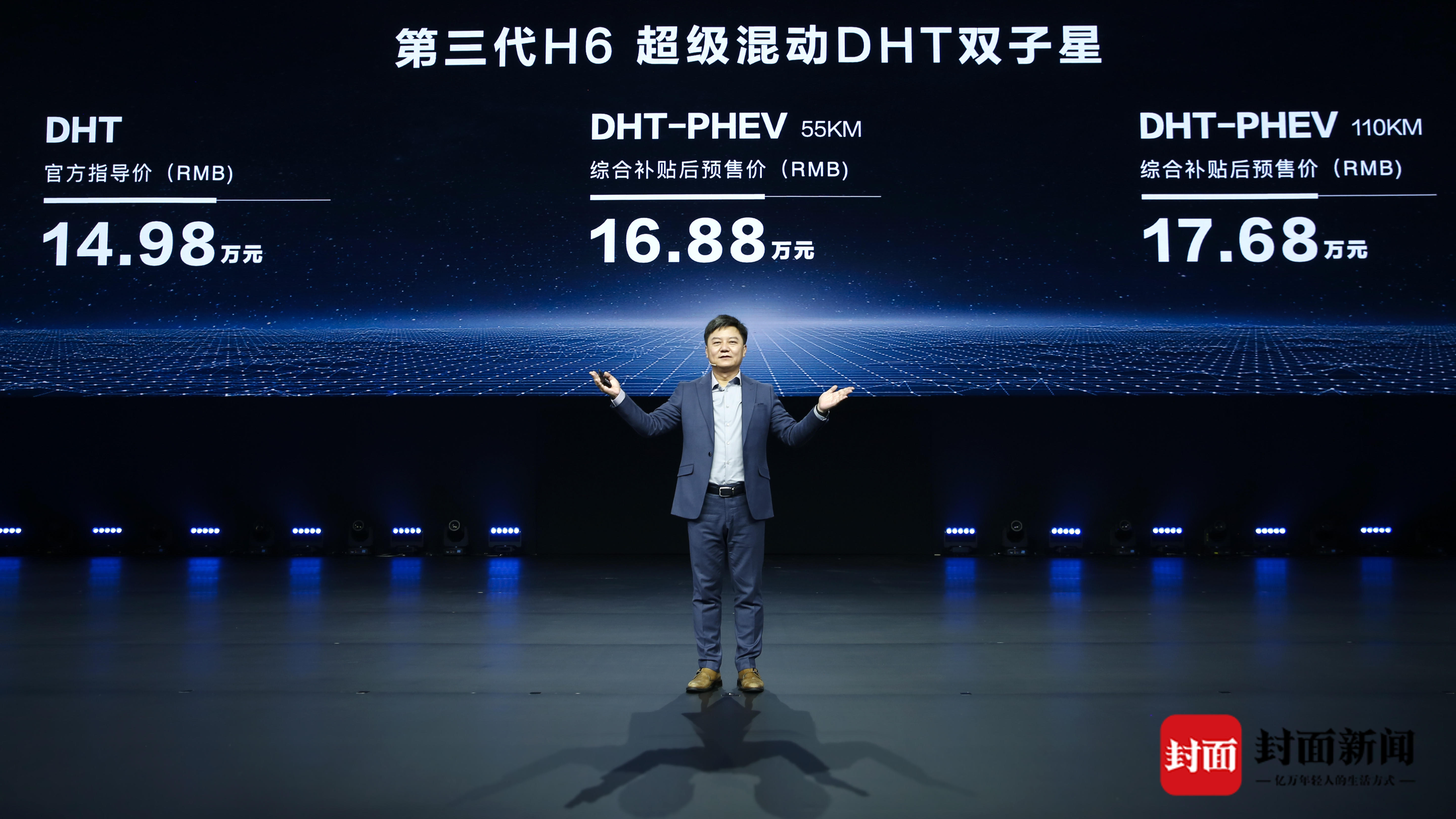 在品牌战略发布之际,第三代H6超级混动DHT双子星随即正式亮相上市。哈弗H6 DHT HEV 车型上市官方指导价为14.98万元。DHT PHEV车型同步开启预售,55km车型综合补贴后预售价16.88万元,110km车型综合补贴后预售价17.68万元。