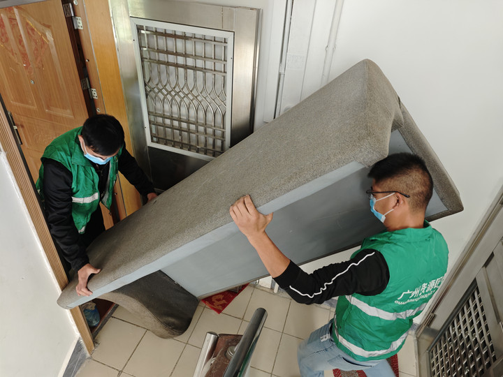 在广州白云,目前已有120余个废旧家具收集点,居民可以将废旧家具自行搬运至收集点,也能通过线上平台预约上门搬运。家具最后会被统一送到白云区大件家具处理中心。