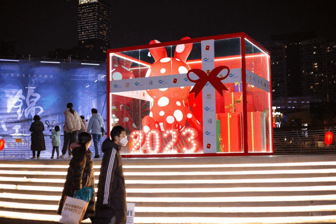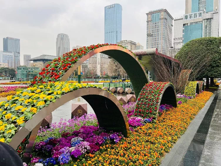 新春将至,成都的大街小巷花团锦簇、装扮一新,为迎接兔年春节的到来,各重要道路节点和公园绿道设置了造型各异的生态雕塑,以花扮靓蓉城,用公园城市的美学表达营造热烈的春节氛围。除此之外,还有流光溢彩的新春彩灯和80余场特色民俗活动,等着市民“打卡”体验。