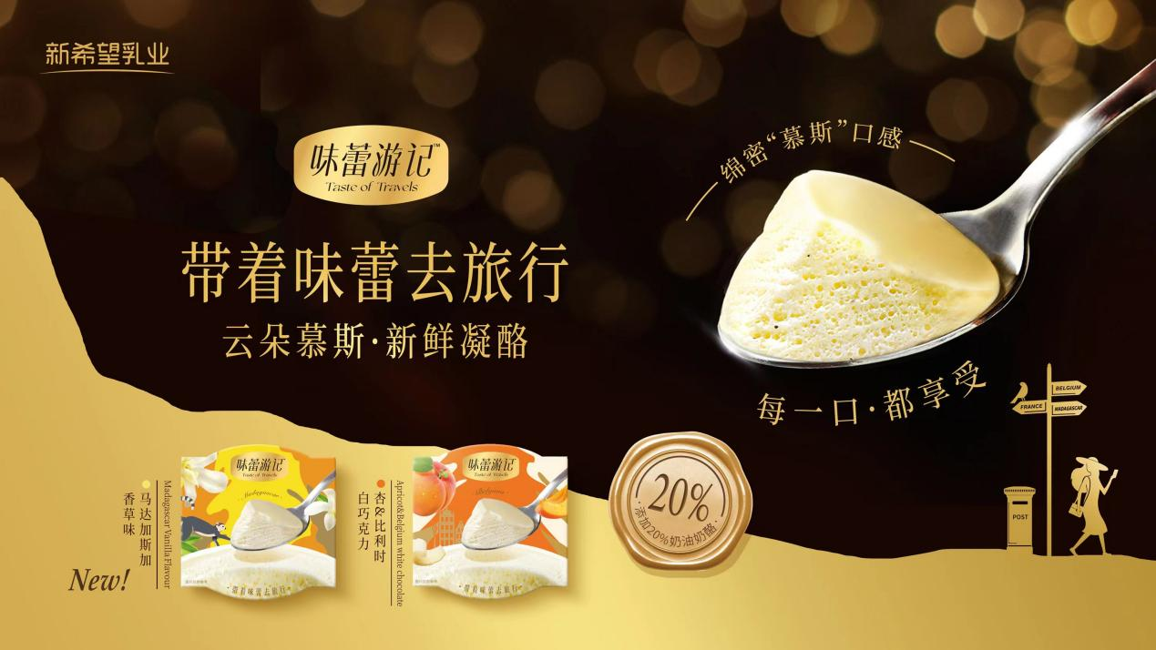 11月9日,新希望乳业就推出了新品低温酸奶家族“味蕾游记·云朵慕斯”,要带领消费者一起“精神出逃”,让消费者在不能远行的日子里带着味蕾和心灵去旅行。