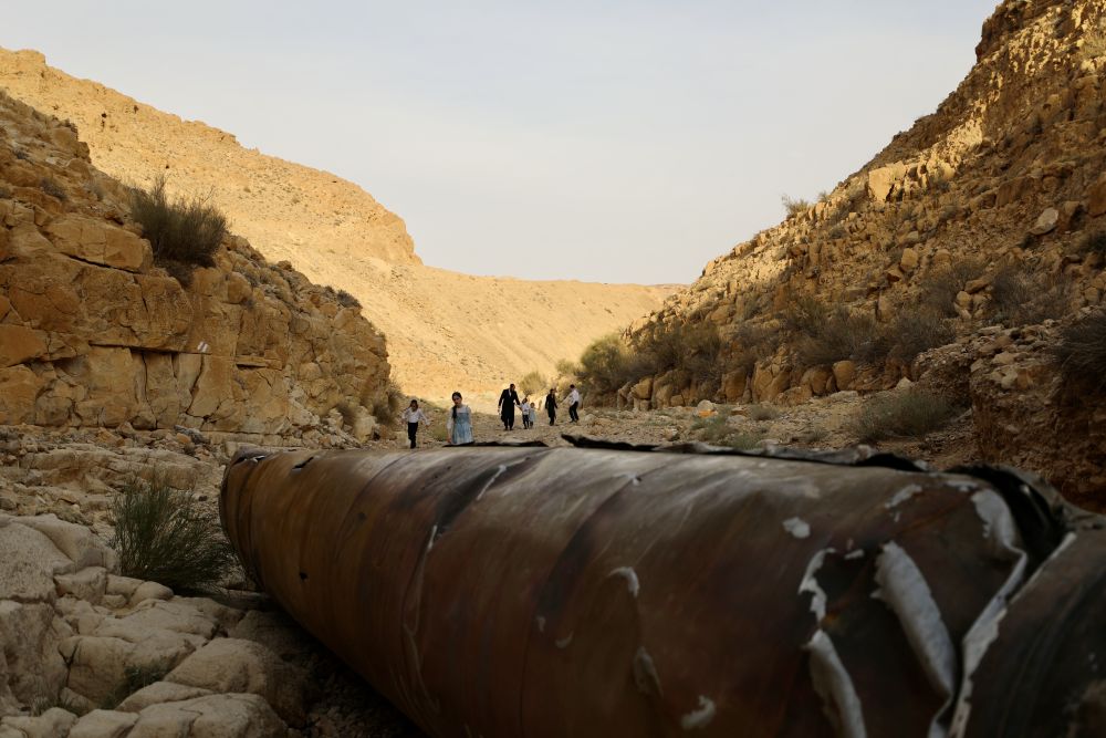 这是4月28日在以色列南部城市阿拉达附近拍摄的伊朗导弹残骸。新华社发(贾马尔·阿瓦德摄)