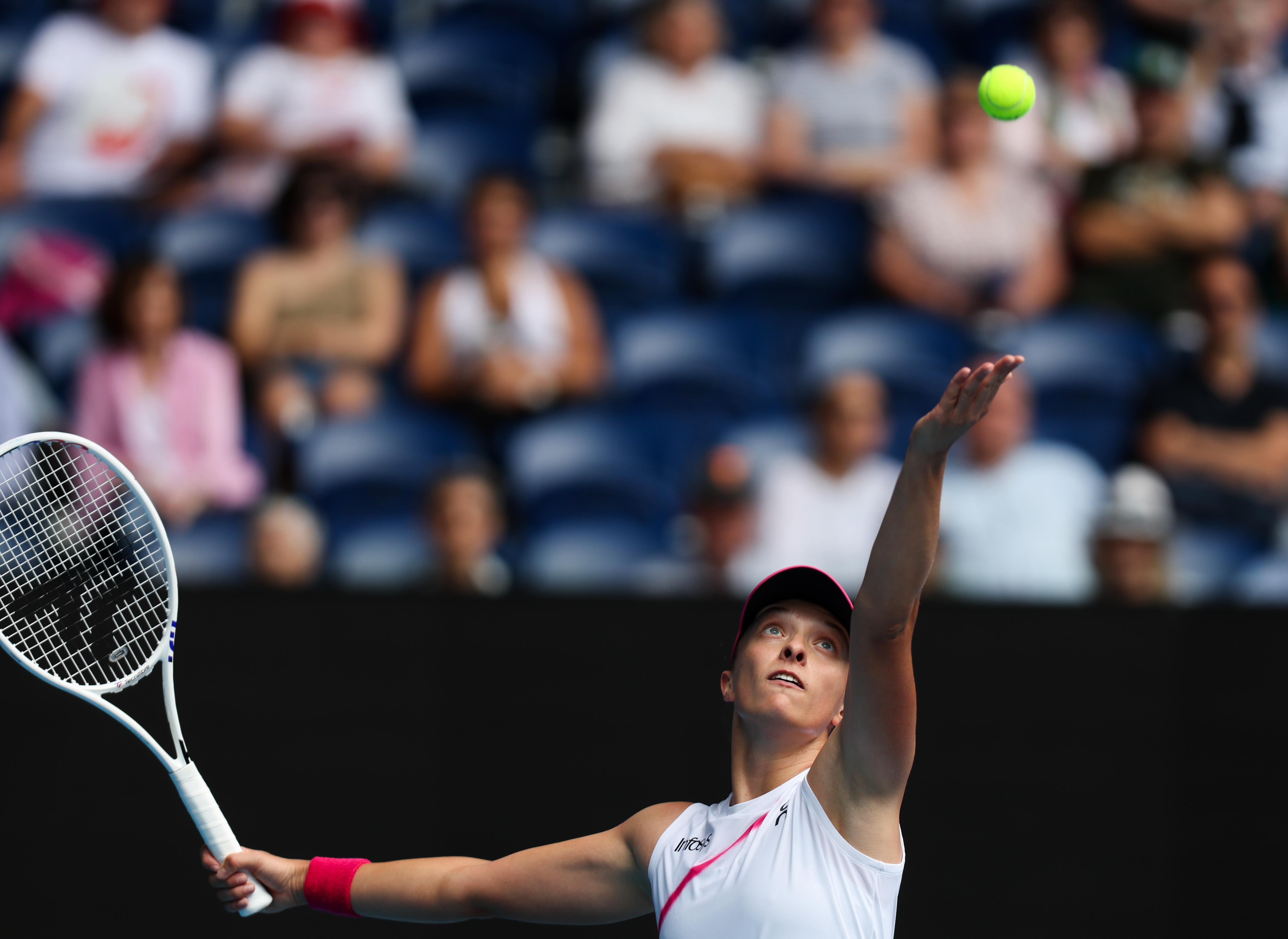 1月18日,斯维亚特克在比赛中发球。新华社记者 马平 摄