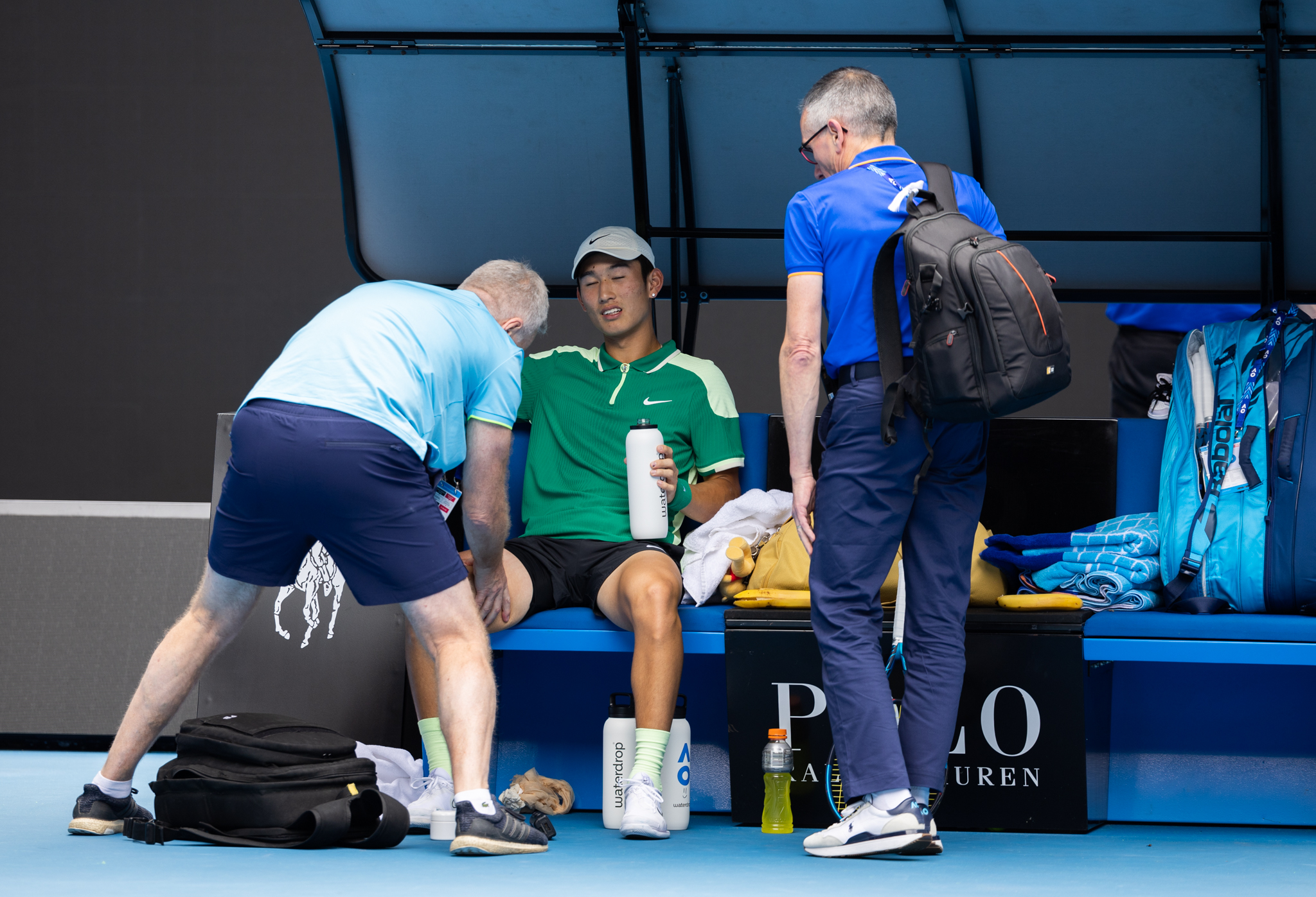 1月20日,商竣程在比赛中因伤接受治疗。新华社发(胡泾辰 摄)