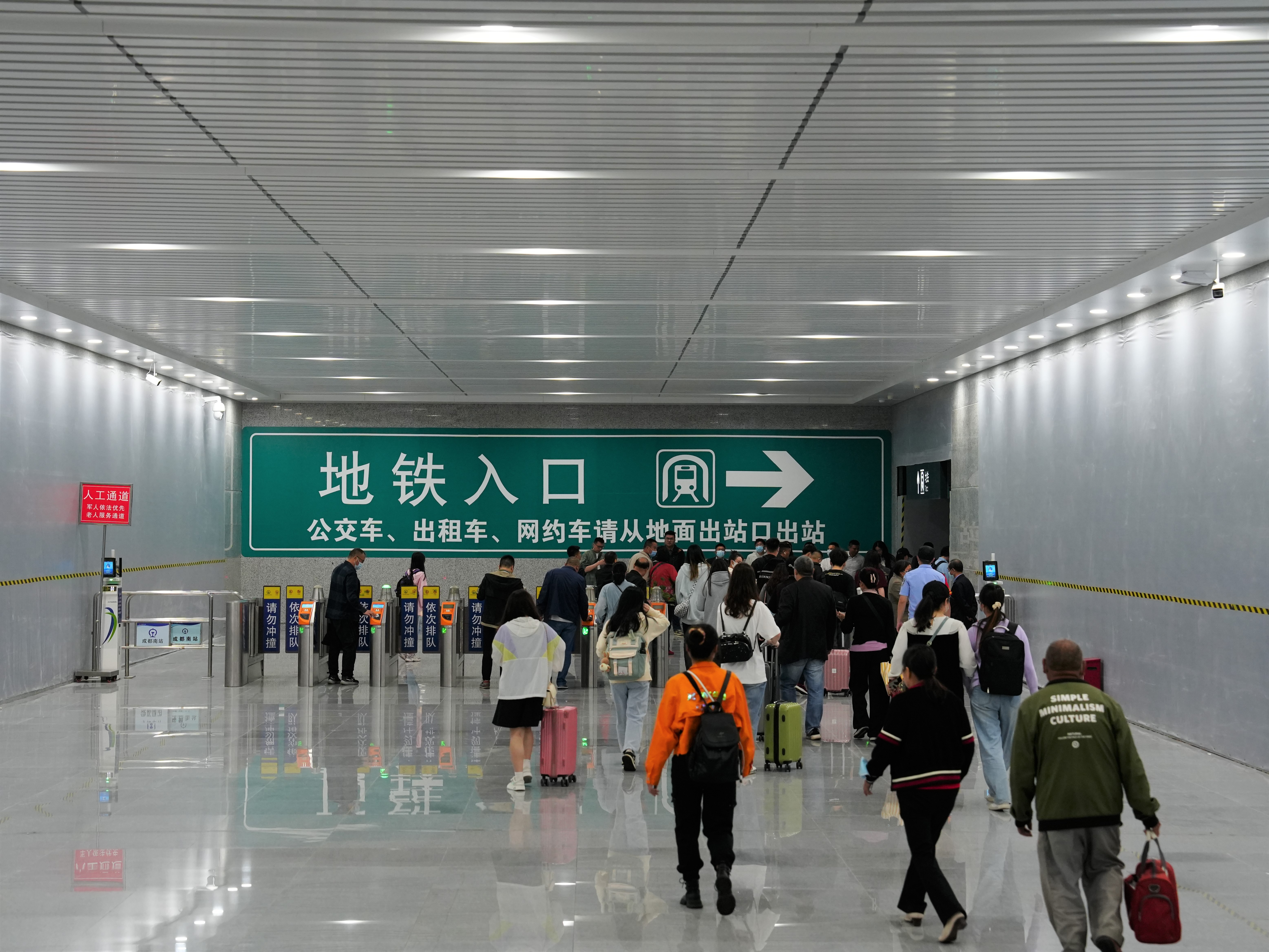 五一小长假即将到来,为进一步加强铁路与城市轨道交通一体化衔接,提高来蓉旅客换乘城市轨道交通通行效率,封面新闻记者从成都地铁处获悉,自4月28日起地铁火车南站正式启用“铁路与地铁便捷换乘”模式,即经铁路成都南站换乘地铁,无需出站,也无需二次安检,便可直接购票乘坐地铁,实现“铁路→地铁”无缝换乘。