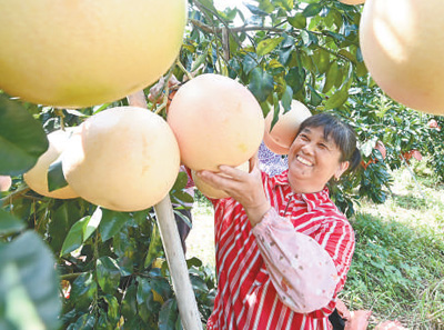 特色林果 江西省赣州市宁都县赖村镇洪源示范种植基地,农户在采摘富硒红柚。 曾嵘峰摄(影像中国)