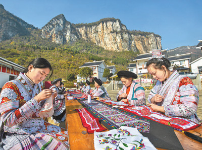 特色手工 贵州省黔西市新仁苗族乡化屋村,绣娘们在制作绣品。 苏 滨 史开心摄影报道