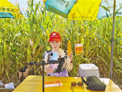 市场拓展 甘肃省张掖市甘州区大满镇大沟农场,电商主播在线推介玉米新品种。 赵帅杰 张玉峰摄影报道