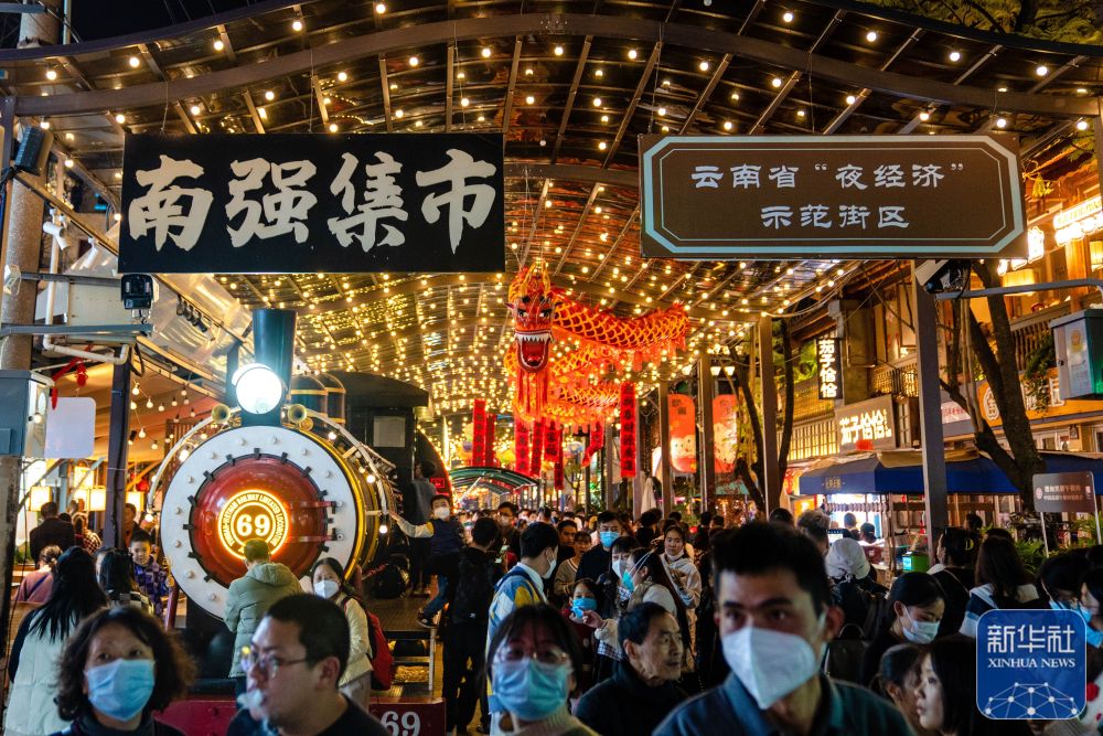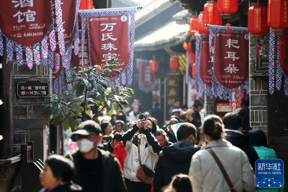 1月23日,游客在云南省昆明市南强街巷游览。新华社记者 胡超 摄