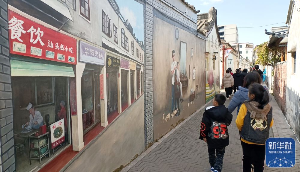 1月24日,游客在广东汕头龙湖区十一合村观光游览。新华社记者 卢汉欣 摄