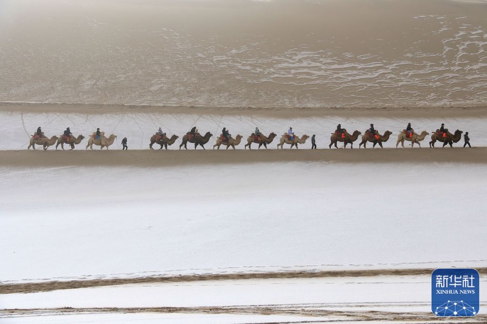 1月24日,游客在甘肃省敦煌市鸣沙山月牙泉景区游览。新华社发(张晓亮摄)