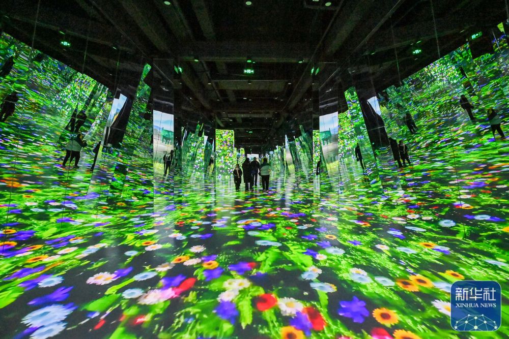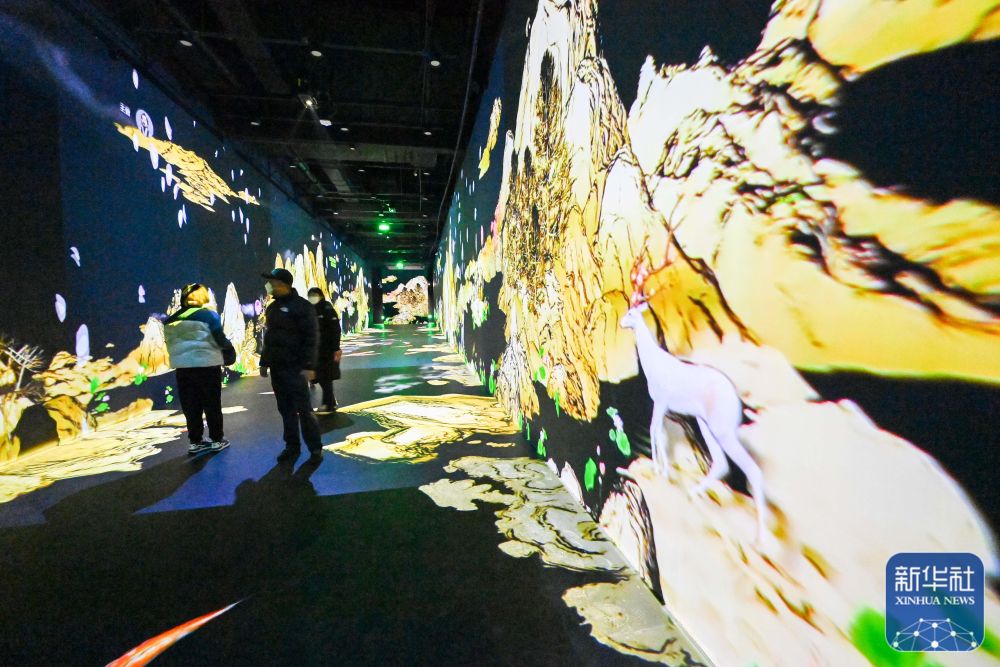 1月24日,游客在山东潍坊青州古城景区体验“时空隧道”。新华社发(王继林摄)