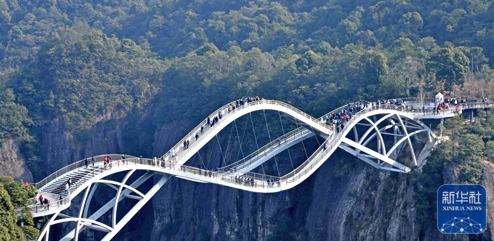1月24日,游客在浙江省台州市仙居县神仙居景区游玩。新华社发(王华斌摄)