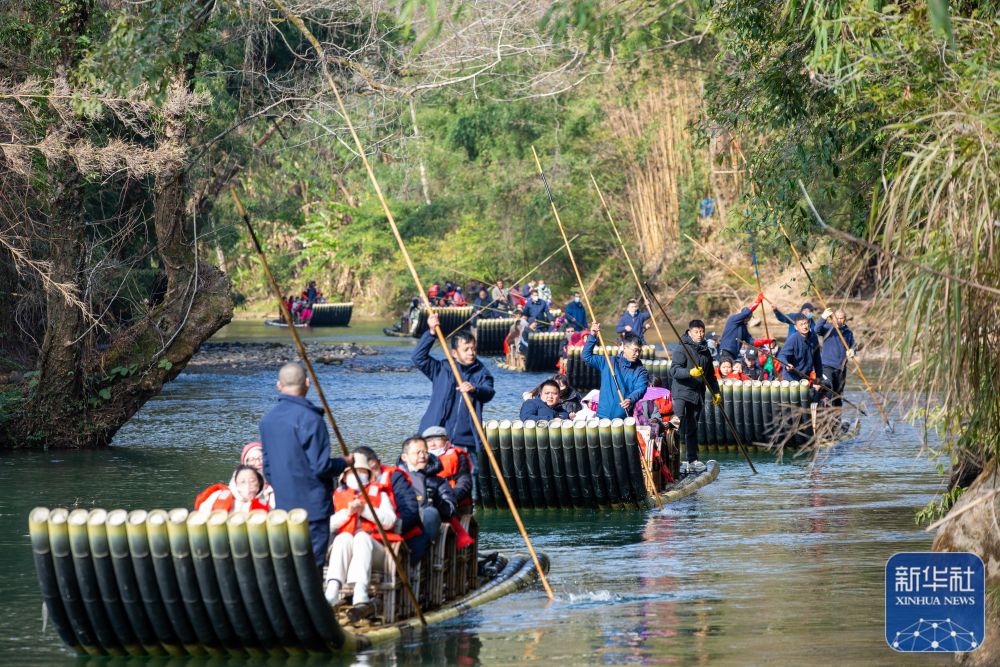 1月24日,游客在福建武夷山景区乘竹筏游览九曲溪。新华社发(陈颖 摄)