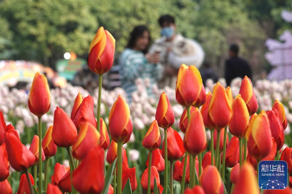 1月24日,游人在广西南宁青秀山风景区观赏郁金香。新华社发(喻湘泉摄)