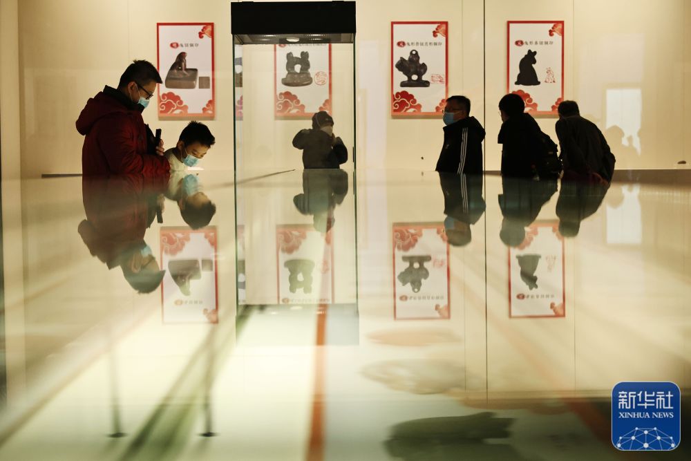 1月24日,游客在天津博物馆观看“大展宏‘兔’——天津博物馆癸卯生肖文物展”。新华社发(刘东岳摄)