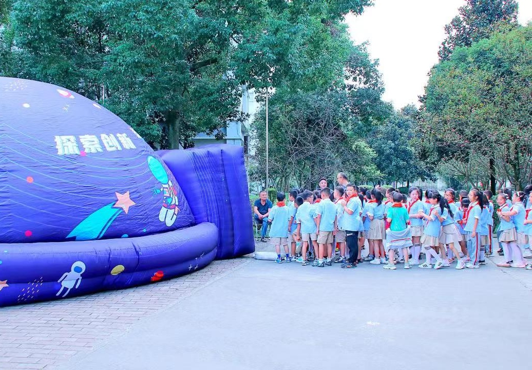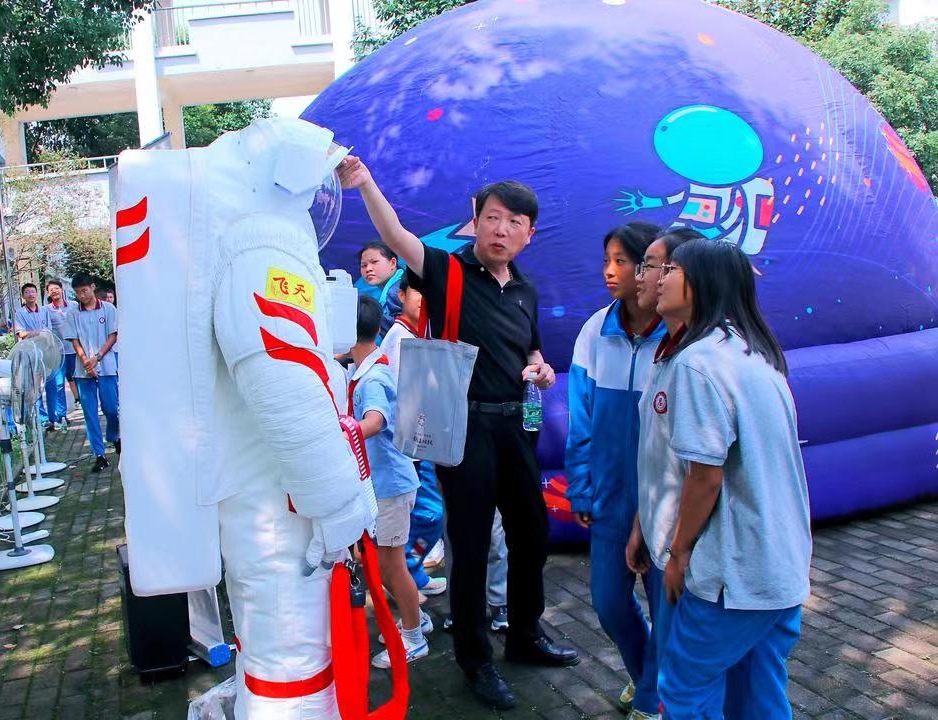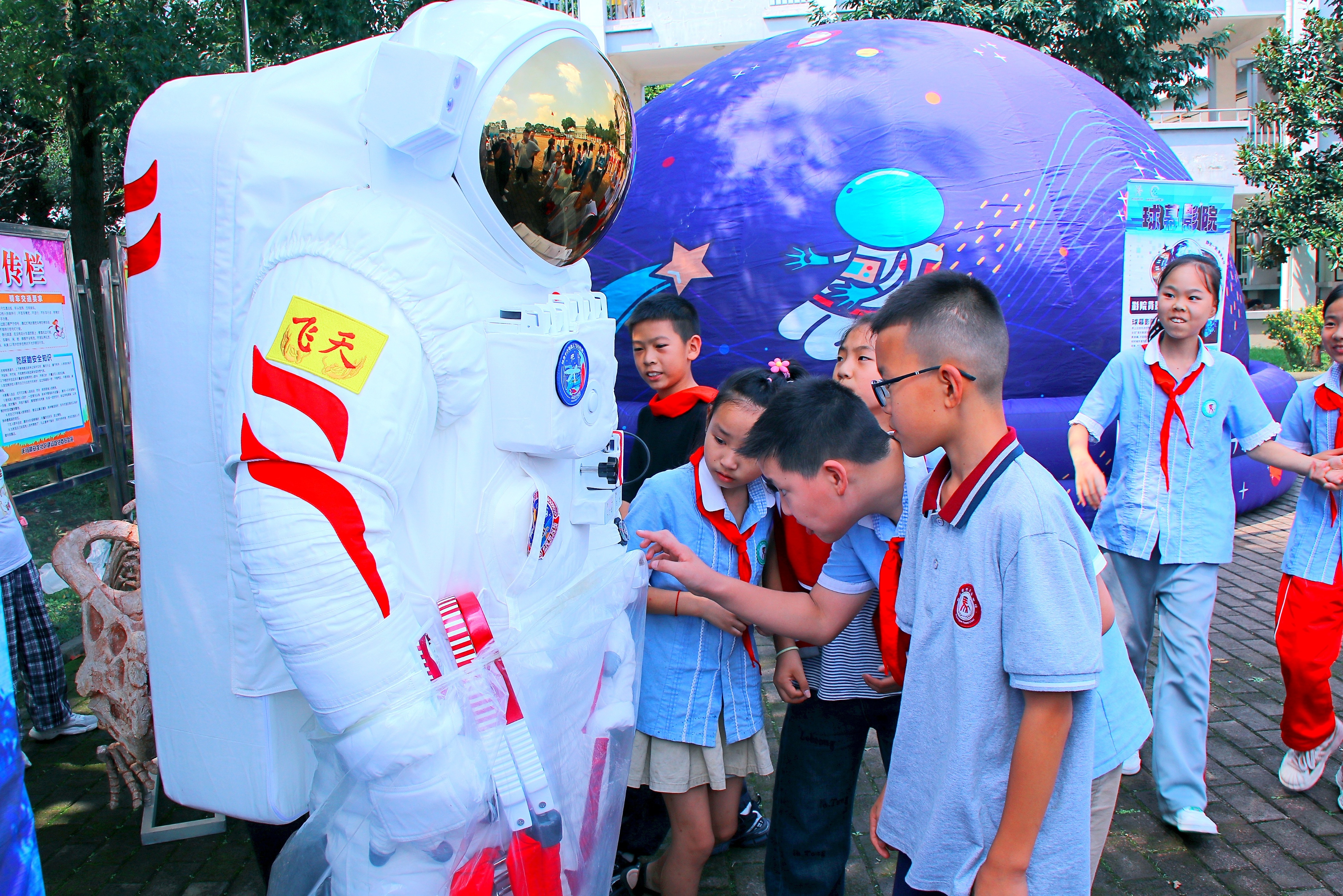 活动现场,“同心”科普流动服务车开进校园,为孩子们带来了IMAX球幕影院、恐龙化石以及首次亮相的仿真新一代“飞天”舱外航天服等展示,激发了孩子们科学好奇心和探索欲。来自天马学校三年级二班的陈梦琴同学说:“今天看了恐龙化石、宇航员服,还有许多新奇的东西,我感觉非常有趣,从中也可以学到很多的科学知识。”