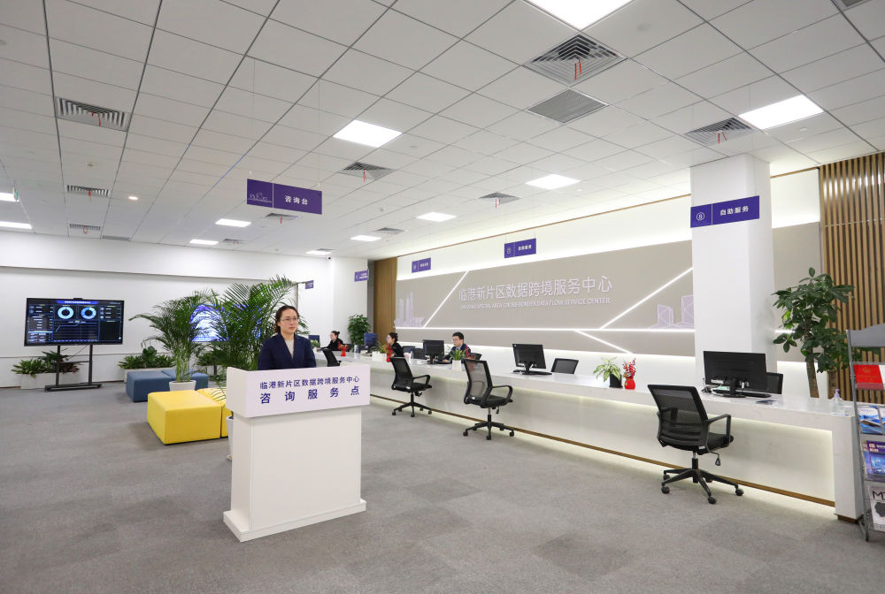 中国(上海)自由贸易试验区临港新片区数据跨境服务中心内景。该中心4月7日启用运营,致力于为数据处理者提供全方位、全流程数据跨境服务,包括材料受理、业务咨询等,在临港新片区打造数据跨境流动的绿色通道(2024年4月9日摄)。