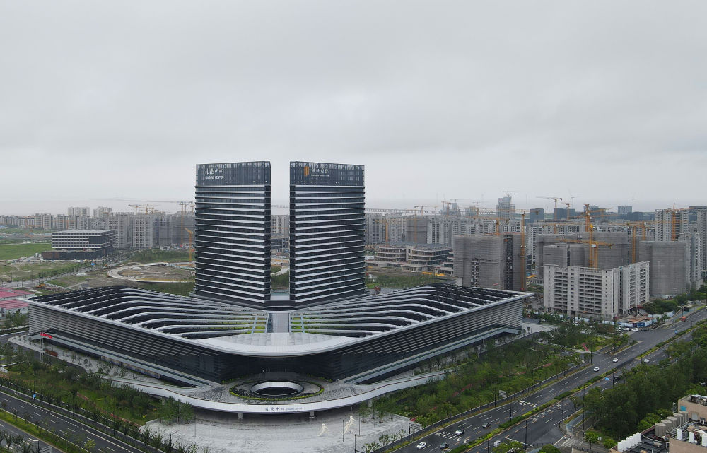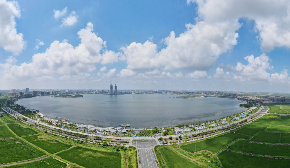 这是中国(上海)自由贸易试验区临港新片区滴水湖(无人机全景照片,2023年9月6日摄)。