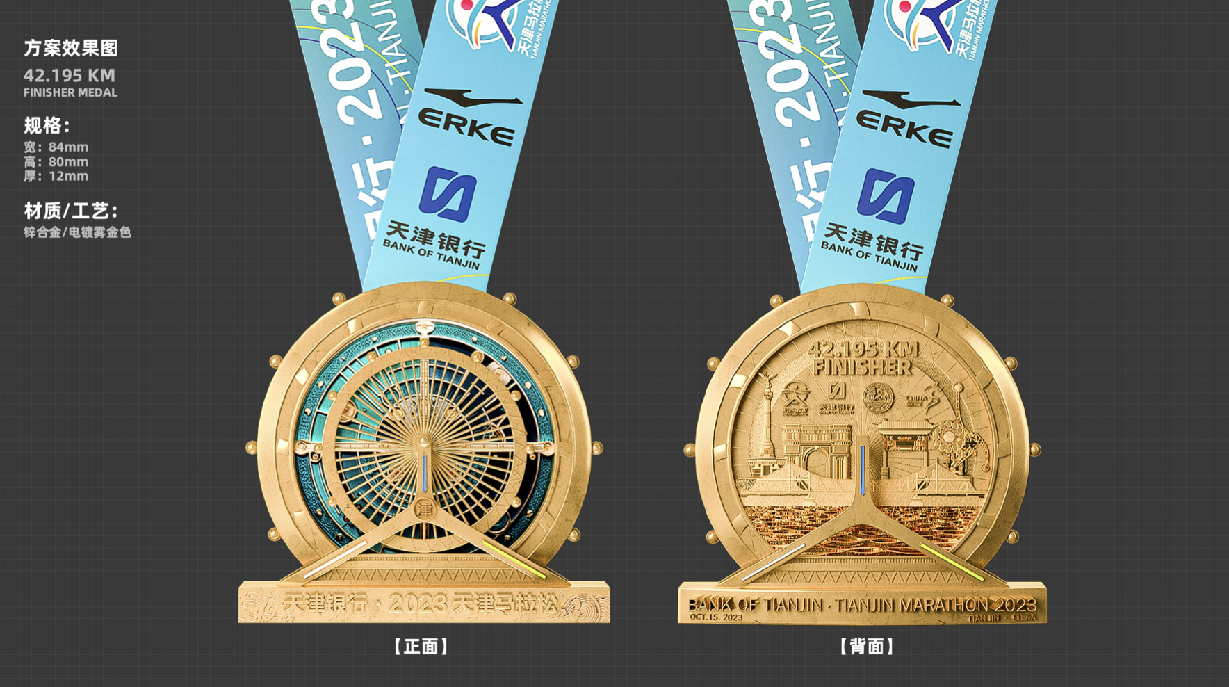当天的新闻发布会还发布了本届天津马拉松的主视觉及赛事标识,颇具创意和特色的赛事奖牌也首次亮相。