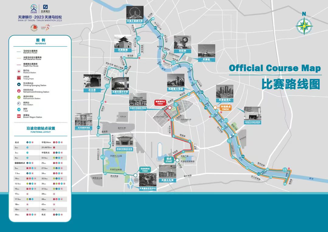 赛事以“天马有我,津津乐道”为主题口号。天津方面设计了一条串联城市地标、围绕海河两岸“最有诚意”的马拉松赛道,途经五大道、民园广场、世纪钟、意式风情街、天津之眼、鼓楼、周恩来邓颖超纪念馆、天津奥林匹克中心等,现代都市风貌与历史文化禀赋交相辉映。