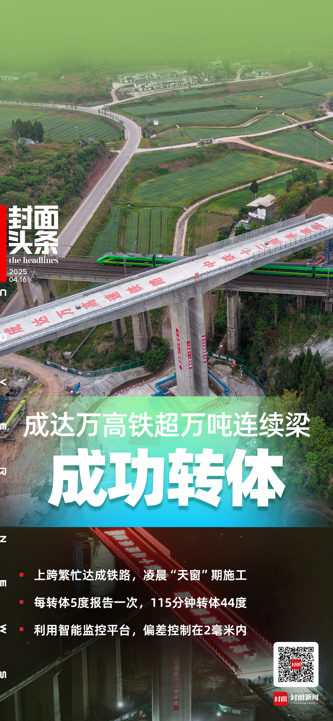 凌晨3点55分,历时115分钟,现场全部作业完成,成达万高铁连续梁精准逆时针转体44度,成功上跨达成铁路。