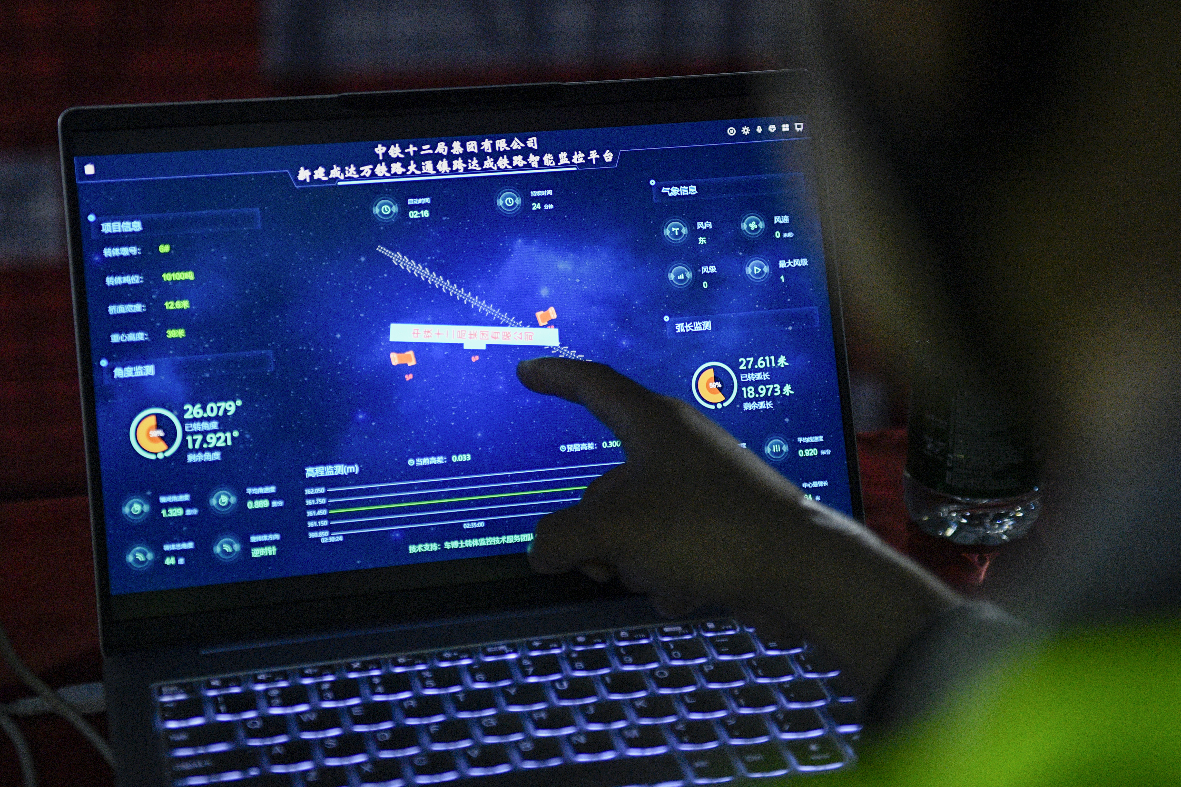 如何控制转体精度呢?记者在现场看到,有工作人员站在一个电脑屏幕前,这就是智能监控信息化平台。