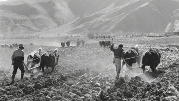 凑齐3头耕牛、2个旧犁铧、3个旧木犁架