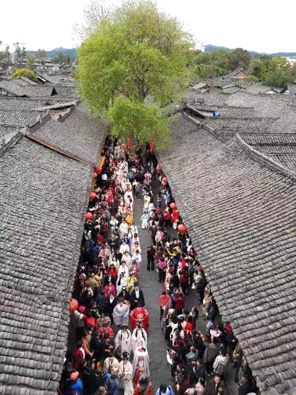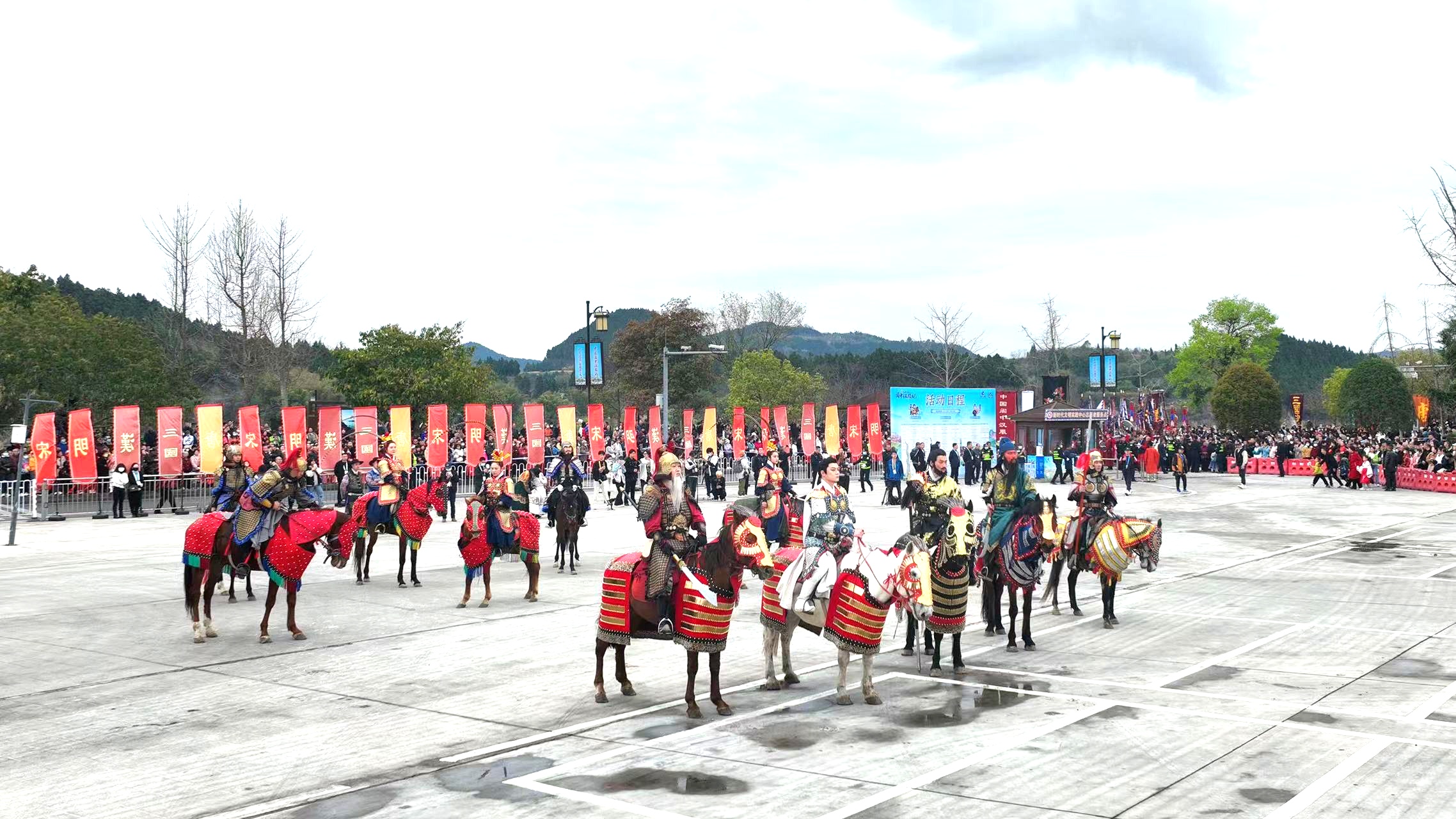 开幕式后,“五虎上将”骑骏马领头,汉服小姐姐坐花车压阵,数支汉服方阵巡游阆中古城。三月的古城,仿佛时空倒置,各朝各代的正统汉服次递登场,四川本土历史文化名人款款走来,大街小巷游人如织,追随巡游队伍,追随一段惊艳的时光。