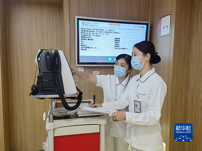 曾颖指导年轻护士工作。新华社记者吴燕霞 摄