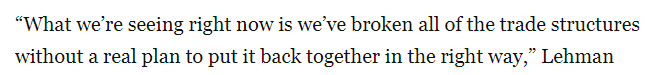 文章称,对包括加拿大等在内的国家以及诸如钢铁和铝等特定商品征收关税,导致美国拖拉机、联合收割机和化肥的成本上涨。文章援引爱荷华州农民联盟(Iowa Farmers Union)负责人亚伦·莱曼(Aaron Lehman)的话说:“目前我们所面临的情况是,我们已经打破了所有的贸易体系,但却没有制定出任何切实的方案来重新构建这些体系。”