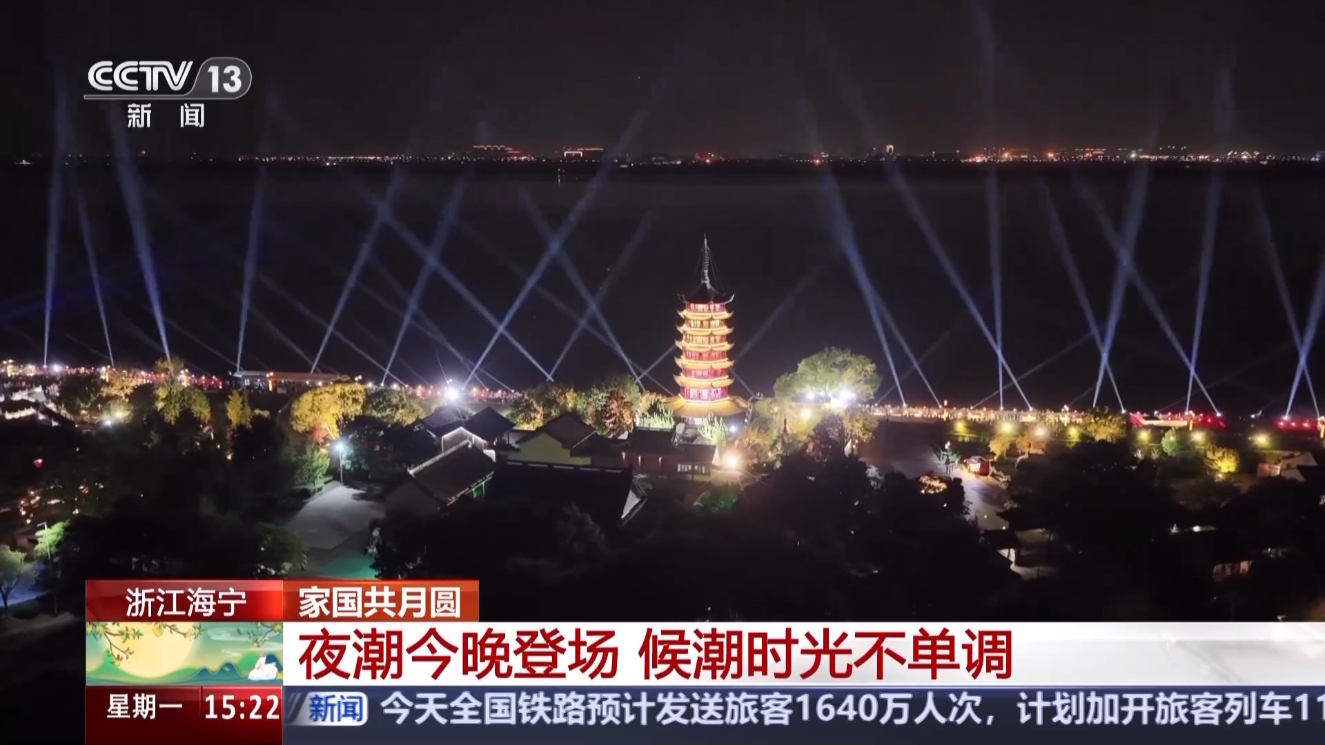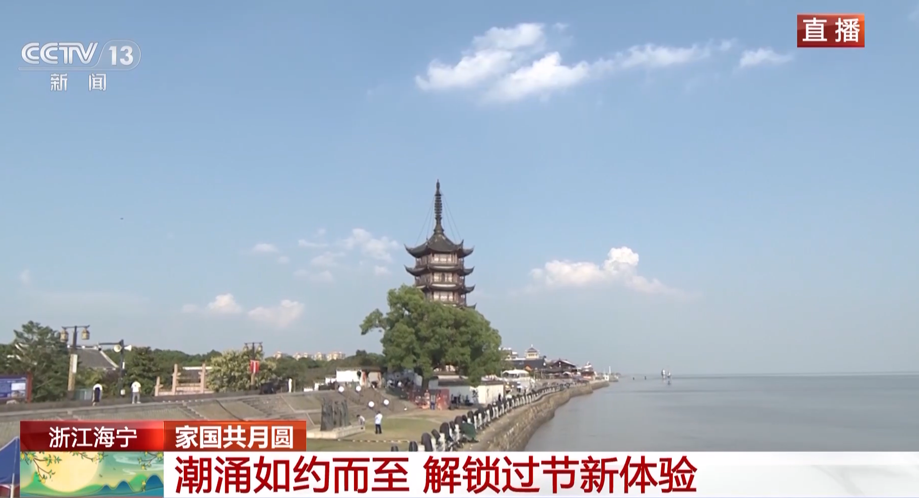 总台记者 夏周:今天的“夜潮”预计会在23点46分抵达盐官。在盐官“候潮”你一定不单调,白天它是热闹的,入夜,它是恬静古朴的。如果时间富足,你可以登上占鳌塔的塔顶欣赏满城灯火,也可以与家人漫步鱼鳞石塘,眺望影影绰绰的江面。而随着夜潮的到来,占鳌塔的灯光秀也将限时返场。