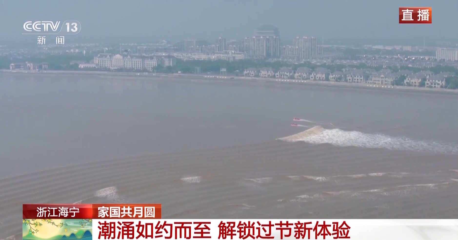 总台记者 夏周:今天,钱塘江大潮在11点45分左右抵达盐官景区,现场都是慕名而来的游客。很多游客一大早开园之后就进场,为的是能够拥有一个更佳的观潮视角,今天的钱塘江大潮有点像是“拆盲盒”,呈现出几股潮头并进的身姿。数据显示,截至今天,假期景区的游客量日均超4万人次。