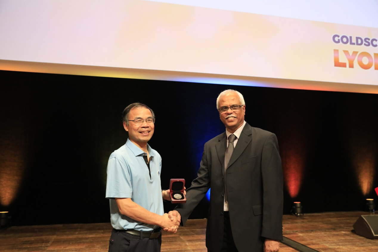 △国际地球化学学会主席Sumit Chakraborty教授向谢树成院士颁发奖章