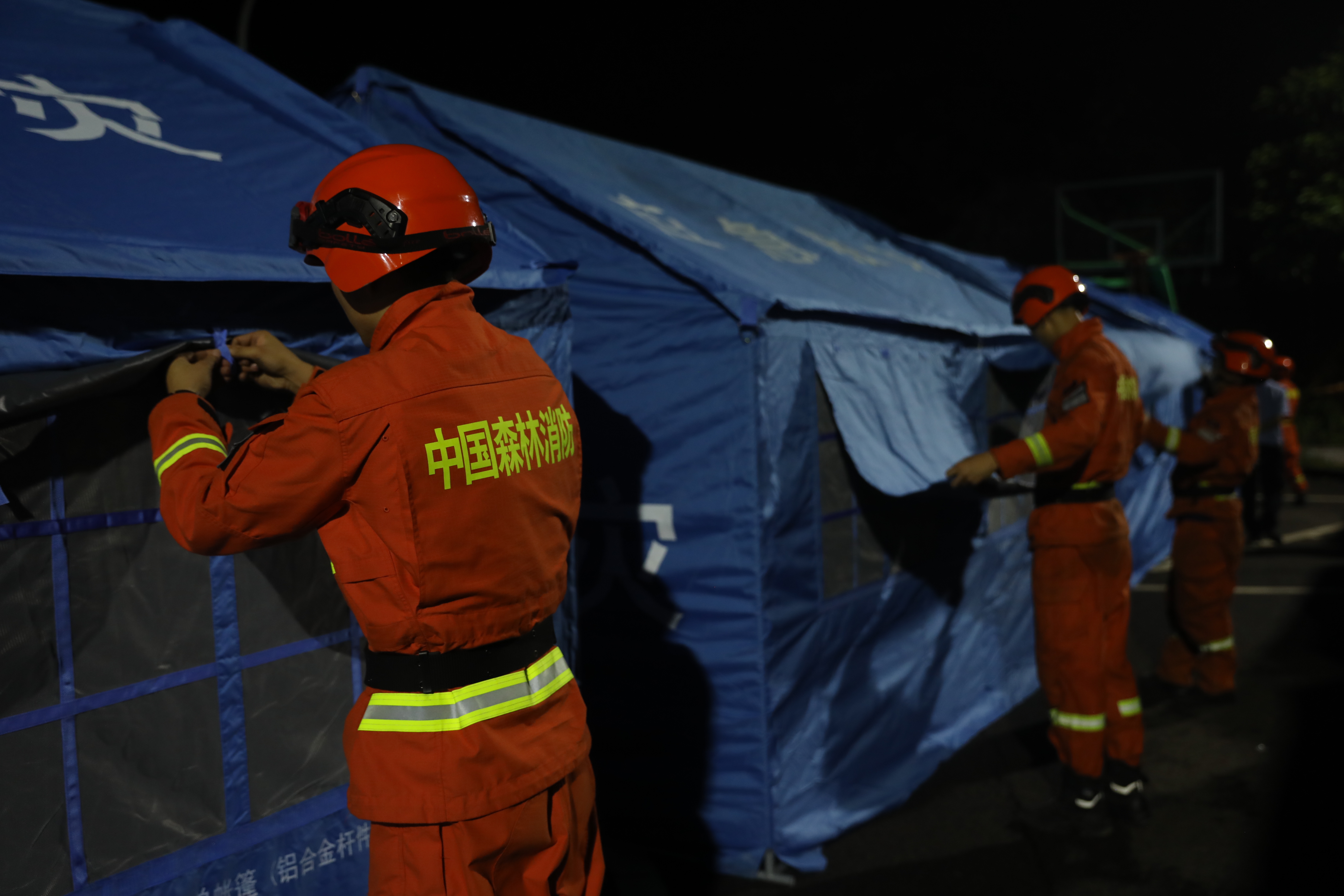 支队指战员到达现场后,在总队和支队两级领导的指挥下,迅速展开救援工作。根据联合指挥部的安排,支队主要负责龙华村几个村队的临时帐篷搭设和生活物资搬卸等任务。
