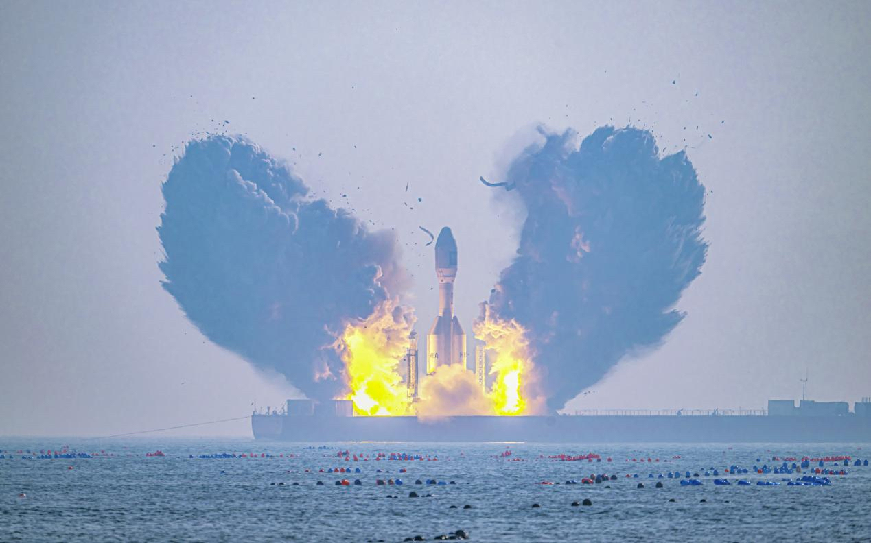 2024年1月11日,引力一号(遥一)运载火箭由太原卫星发射中心在山东海阳附近海域发射升空。图据新华社