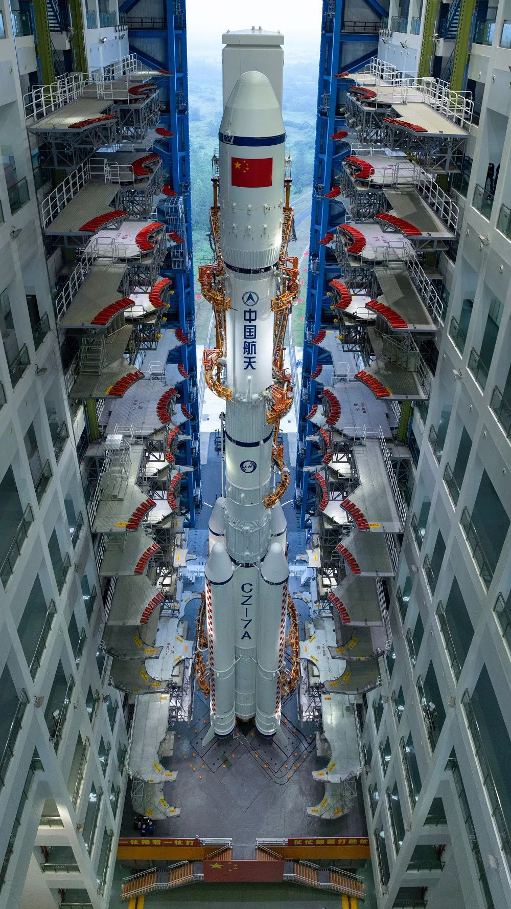 2022年,海南文昌航天发射场垂直总装测试厂房内的长征七号改运载火箭。图据中国航天科技集团。