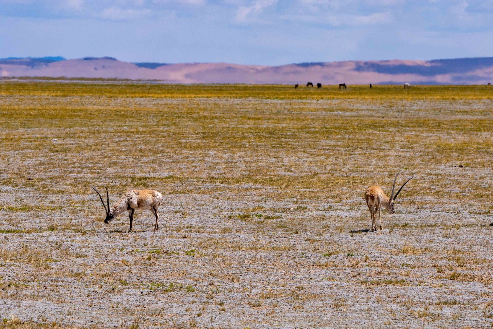 在西藏那曲市境内的羌塘国家级自然保护区“无人区”深处,藏羚羊正在迁徙。每年5月到7月,雌性藏羚羊进入产仔季。在那曲,野外时常能见到在草原上自由活动的藏羚羊。数据显示,近年来西藏重要物种野外种群数量恢复成效明显,藏羚羊数量增长到30多万只。