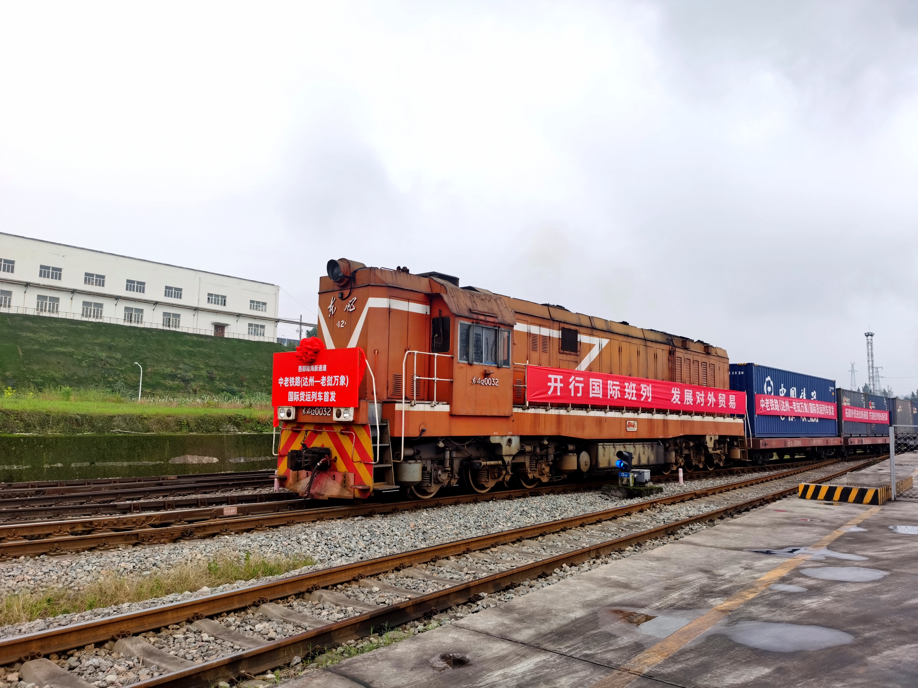 从达州开出的直通老挝万象的国际货运列车。(曾业 摄)