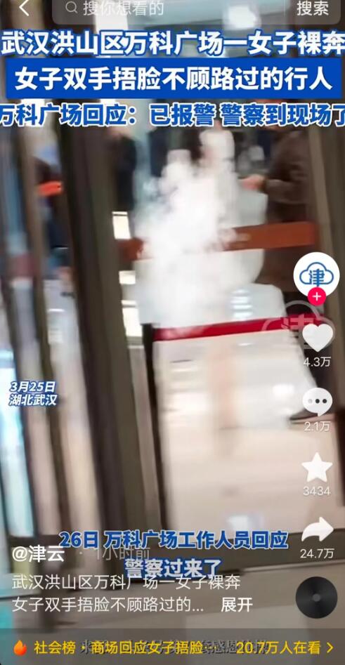 经对网传视频进行检索,南宁互联网举报·辟谣平台发现,根据媒体报道,“一裸体女子现身商场”的视频事发湖北武汉。