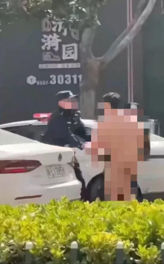 内容为“警察制止裸体男子”的视频,可以看到视频中警车的车牌为皖L,事发地应为安徽宿州。