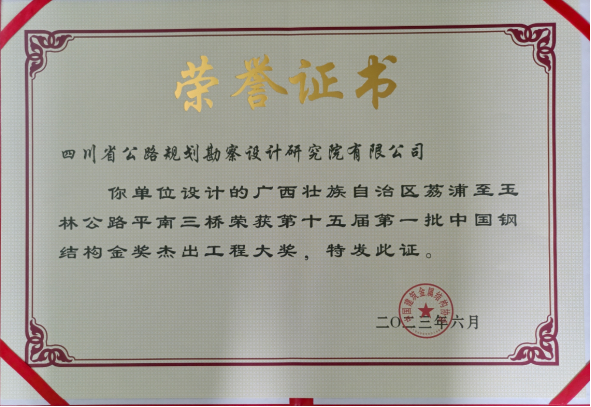 7月9日记者从四川省公路规划勘察设计研究院获悉,该院与广西交通设计集团联合设计的广西荔浦至玉林高速平南三桥,斩获第十五届中国钢结构金奖杰出工程奖。