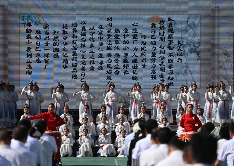 启动仪式当天,相如第一小学内书香洋溢、氛围热烈。活动伊始,与会嘉宾共同观摩校园阅读成果展,沉浸式感受学校在书香校园建设中的丰硕成果。16时,启动仪式正式拉开帷幕,开场节目《少年般绚丽》充满朝气,《小雅鹿鸣》《读中国》等诵读表演轮番上演,师生们以声传情、以读明志,展现出蓬安青少年昂扬向上的精神风貌与深厚的文化素养。