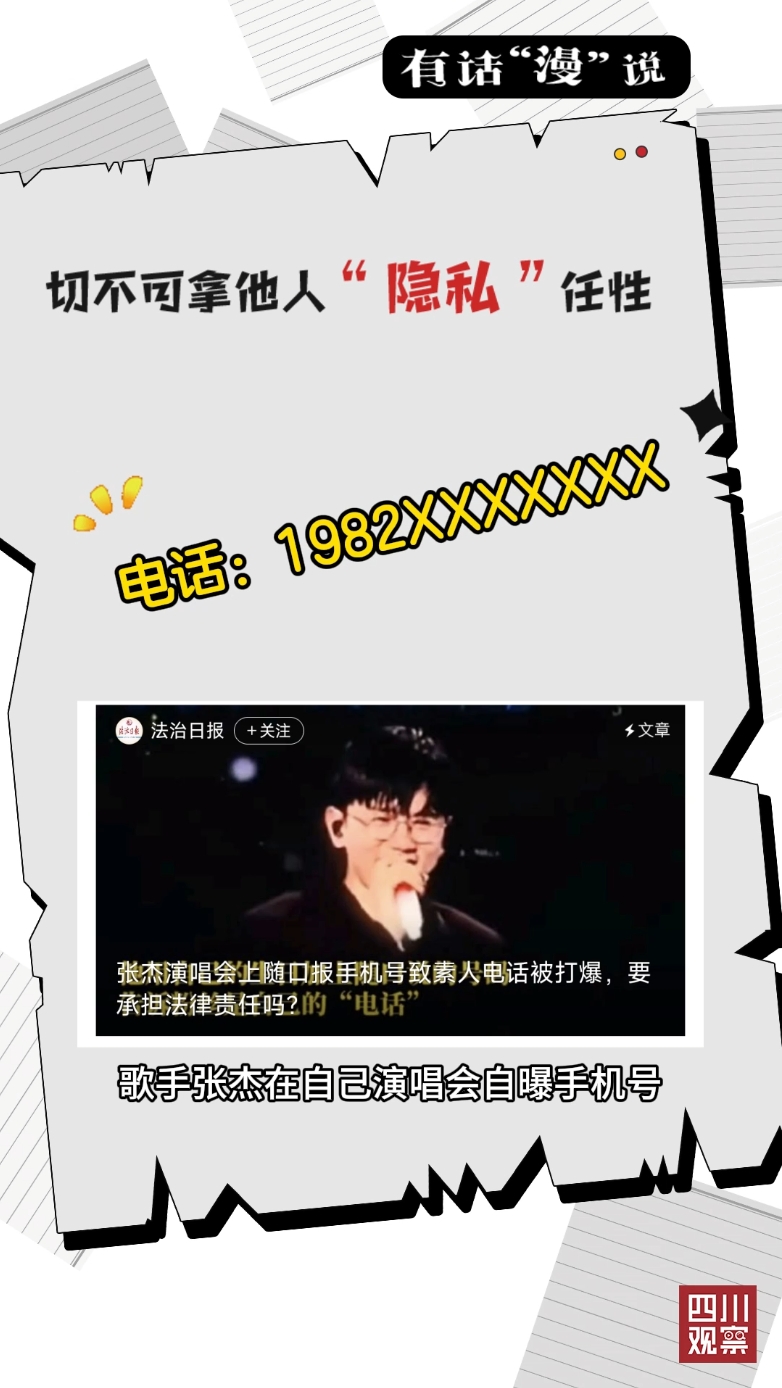 日前,歌手张杰在自己演唱会“自曝手机号”,导致实际号主接到大量陌生电话,被迫关机,引发热议。尽管事后工作室发文致歉,仍然有不少网友认为,此举不管有意无意,都致使该号主遭受了不必要的骚扰。